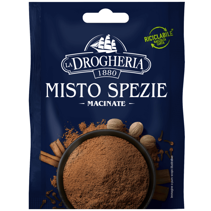 In un unico prodotto alcune delle spezie più gustose, immancabili in cucina: coriandolo, noce moscata, chiodi di garofano, cannella, pimento, zenzero. Sono perfette per dare un gusto unico ed esotico ai piatti.