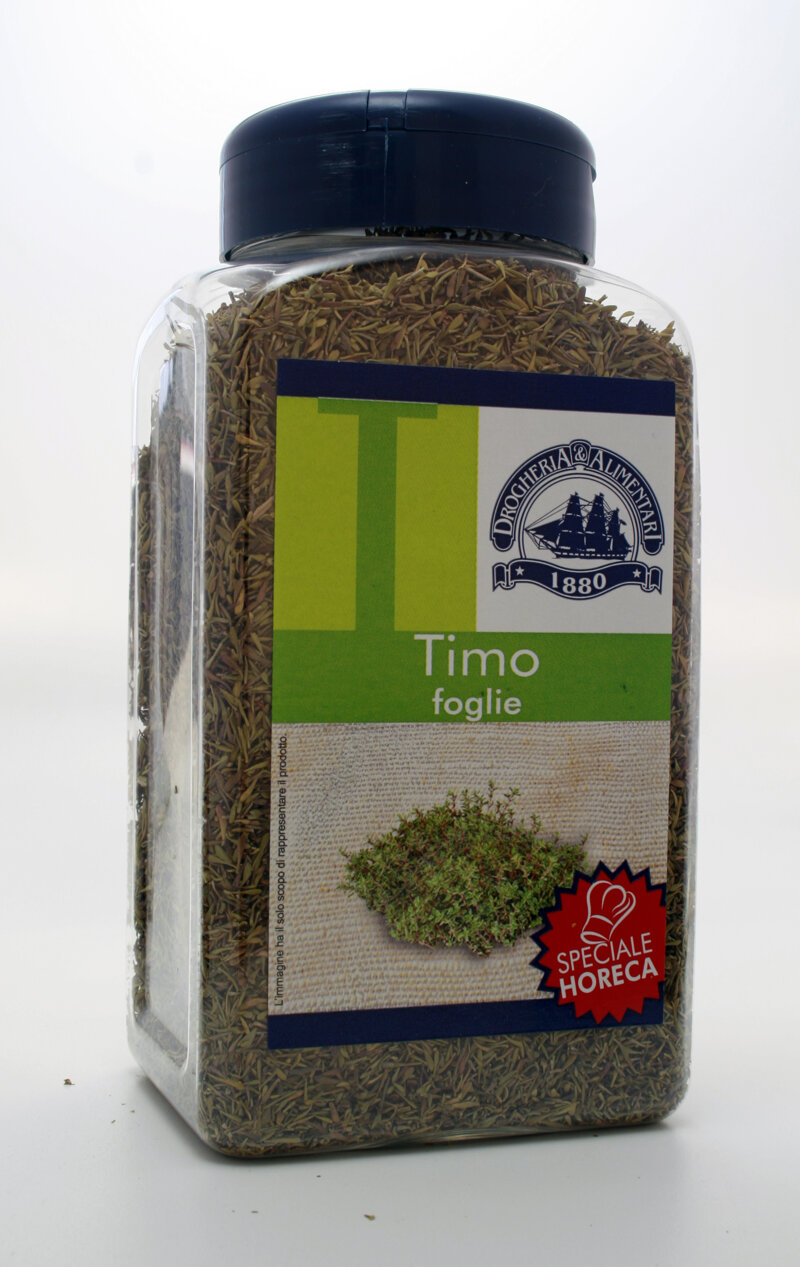 Il timo è una pianta aromatica che una volta essiccata presenta un aroma più intenso e persistente rispetto a quella fresca. Viene raccolto da piante appena nate e tenere per ottenere un aroma fragrante e un gusto fresco. Utilizzata spesso nelle ricette a base di carne.